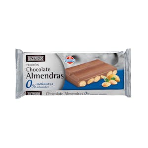 Almendras tostadas (28%), edulcorante: maltitol, leche desnatada en polvo, manteca de cacao, pasta de cacao, inulina, leche entera en polvo, materia grasa láctea anhidra, pasta de avellanas, aceite vegetal de girasol, emulgente (lecitinas), aromas. Cacao: 29% mínimo (en el chocolate). Puede contener otros frutos de cáscara (nuez, pistacho) y soja. SIN GLUTEN.
